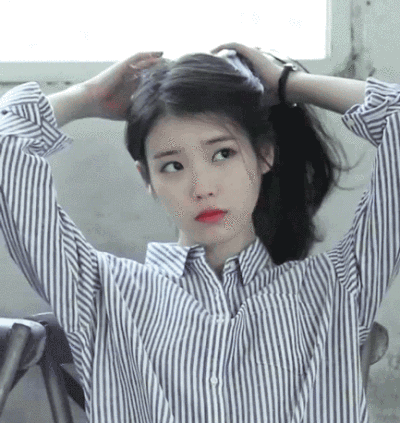 对着镜子扎头发的可爱妹子