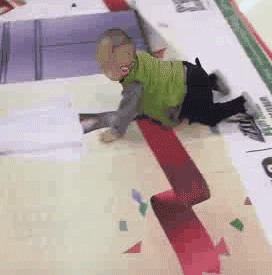 小朋友跑步不看道,一下就撞到了栏网上